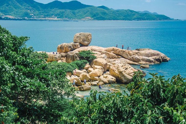位於芽莊以北1.8公里處,這裡有多塊巨大的花崗岩形成鍾嶼,並延伸入海中,而形成石岬角,它是法國電影《情人》的外景拍攝地之一男主角梁家輝,電影結尾處,男女主角站在海邊的礁石旁,做最後道別的地方。芽莊以沙岸為主,但石岬角為芽莊少有的岩岸景觀,在空中望下去,石岬角猶如人們的五根手指矗立著,又稱為五指岩,多處花崗岩重重疊疊,雖稱不上是個山,但規模較大的石塊堆可稱為「嶼」,別有一番風情,許多遊客在此攀爬與拍照。