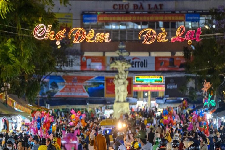 每晚18:00之後,大叻市場迎來了熱鬧的時刻。小販紛紛在市場外開檔,貨品全部擺在地上,其中不乏帶有越南民族色彩的紀念品,錢包、腰帶、絲巾,叫價不高,仍可講價。這裡還是吃貨們的天堂,許多海鮮排擋、烤串攤、米粉攤都聚集在大勒市場外的廣場。大勒夜市的豆漿老店歷史悠久,以其濃郁香甜的傳統豆漿而聞名,吸引著眾多慕名而來的遊客,成為夜市中不可錯過的美食體驗。|