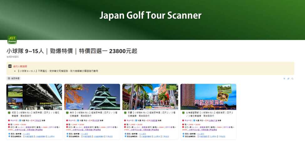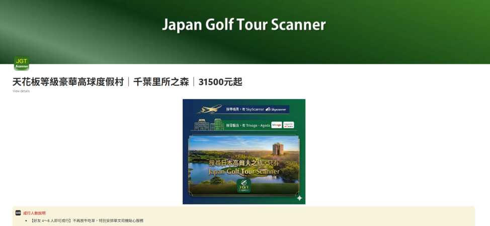 日本JGT Scanner平台為了讓海外球員有最佳的訂購流程,目前只規劃了由台灣配合的旅行社訂購,免去台灣球友來回溝通。