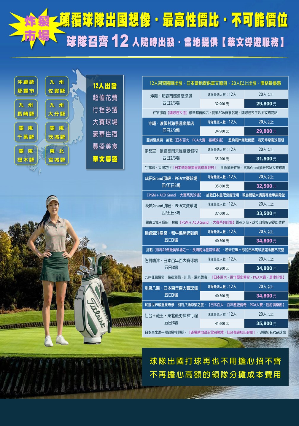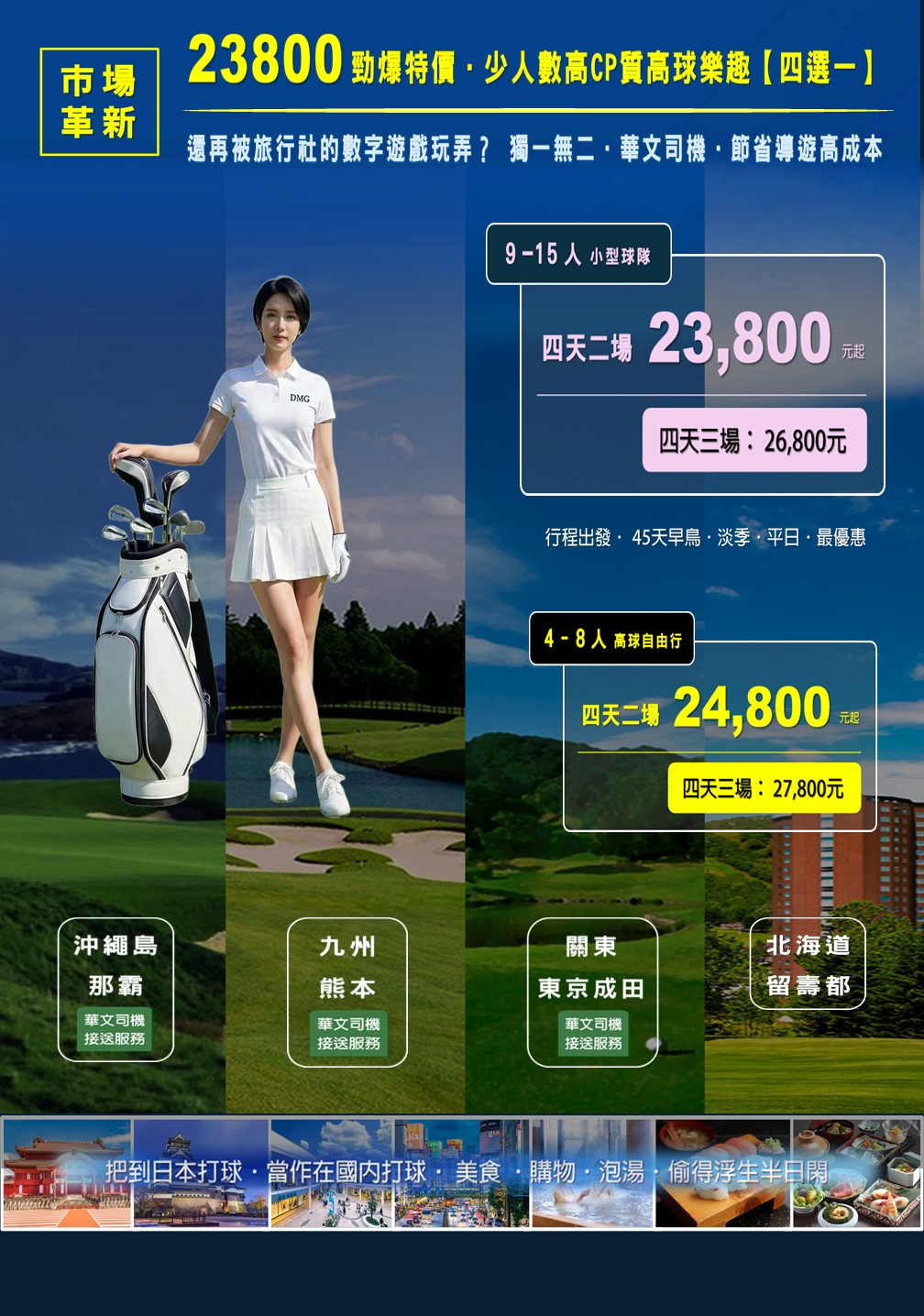 統一旅行社為球友提供了日本高爾夫最佳的選擇:經驗豐富的日本JGT Scanner平台,規劃了多樣的場地及多元的行程。